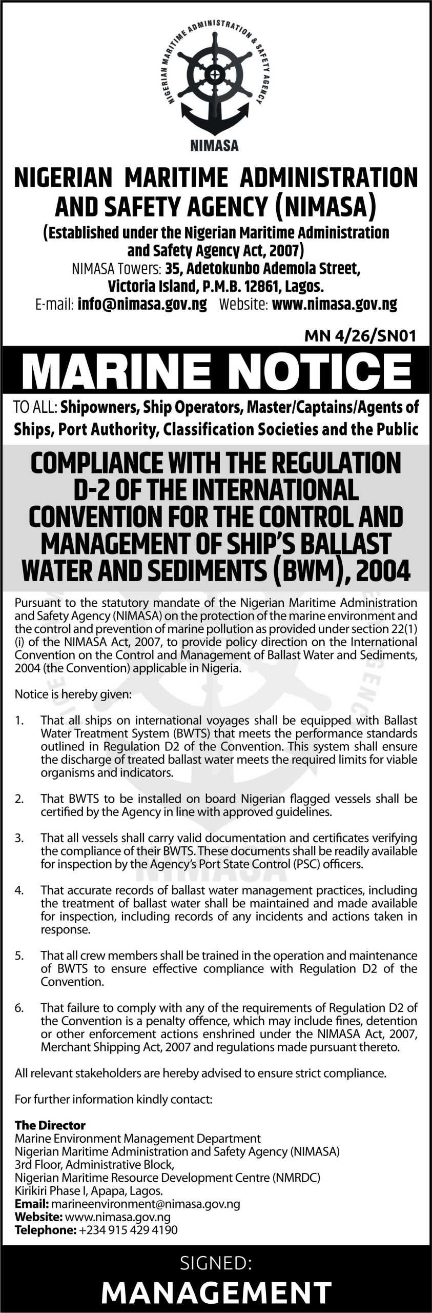 The Sunken “NIMASA- BARUGU” Vessel: Matters Arising